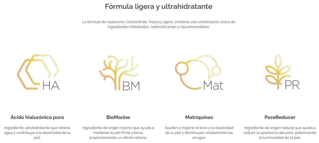Es un sérum facial con ácido hialurónico puro de bajo y medio peso molecular y textura aqua-gel que proporciona una hidratación superficial y profunda. Ayuda a rellenar la piel y prevenir las primeras arrugas y líneas de expresión, disminuye la apariencia de los poros y aporta luminosidad, para una piel radiante.